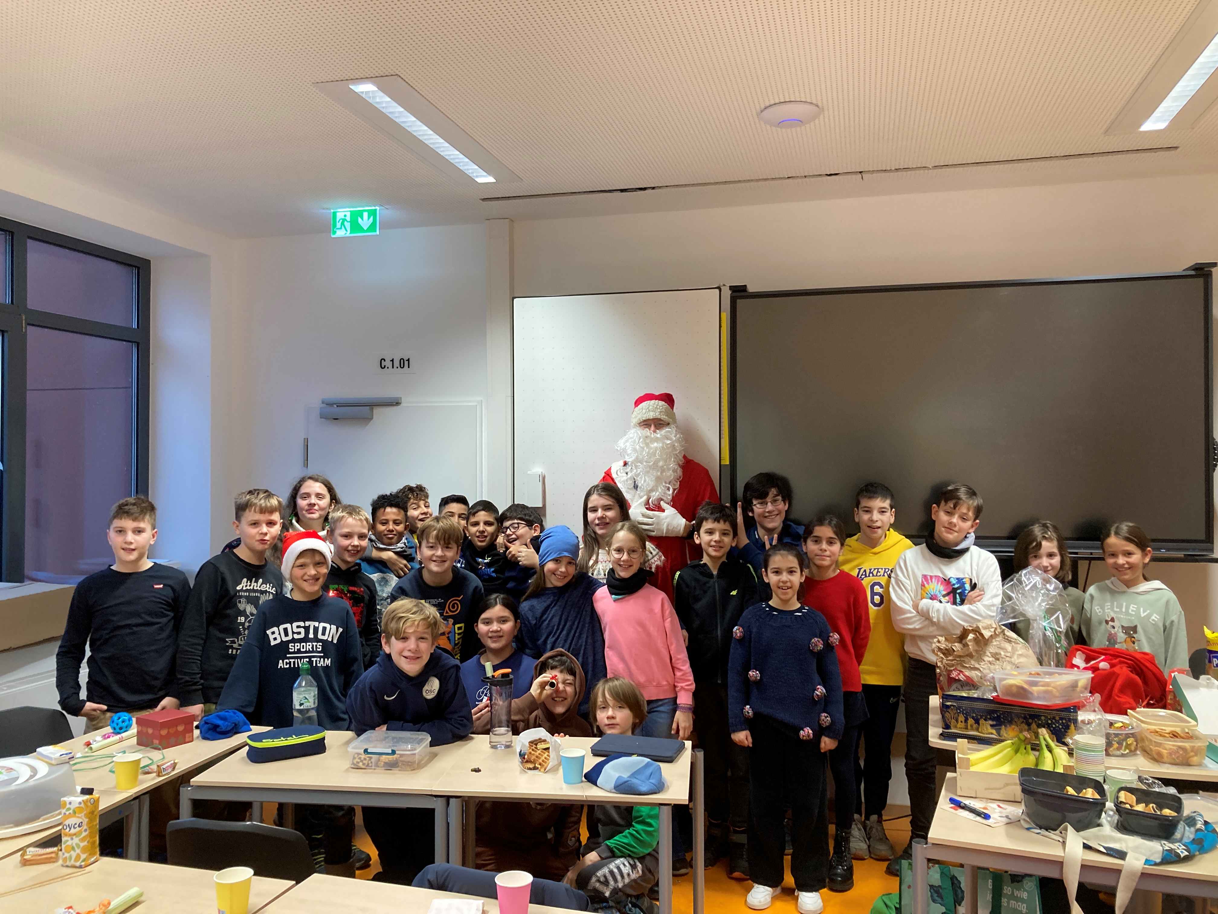 Heute hat der Weihnachtsmann unsere Schülerinnen und Schüler besucht, um ihnen persönlich frohe Weihnachten zu wünschen und kleine Präsente zu überreichen.