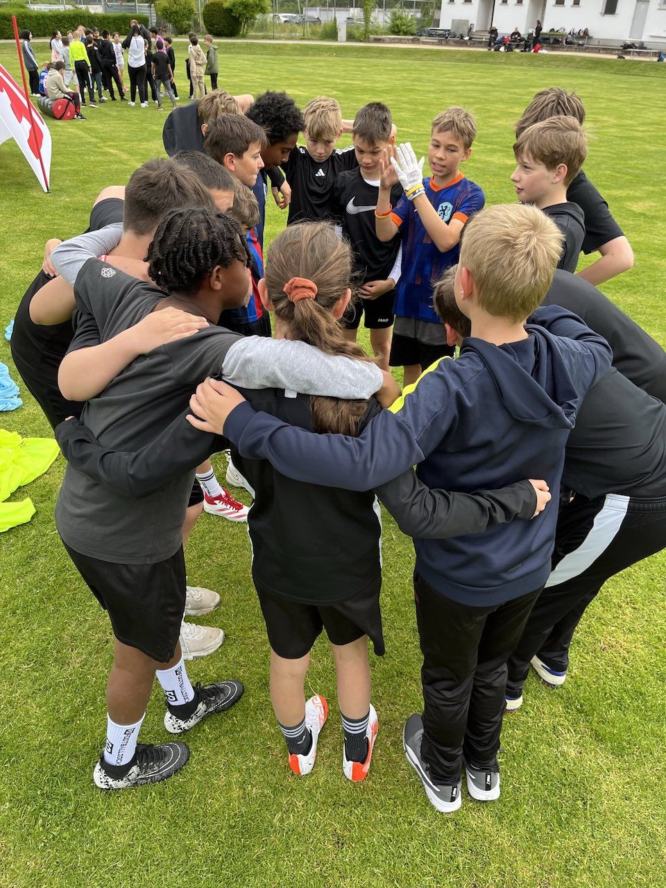 Dann war klar, dass sie im Finale gegen die Edith-Stein-Schule antreten würden. Zunächst lag unser Team mit 0:1 hinten, doch nach einem Touchdown von Fino (6c) stand es wieder 1:1. Das blieb auch so, bis der Schiedsrichter die Nachspielzeit von drei Minuten ansagte. Als diese abgelaufen war, stand es immer noch 1:1 – und ein Sprintduell sollte entscheiden.